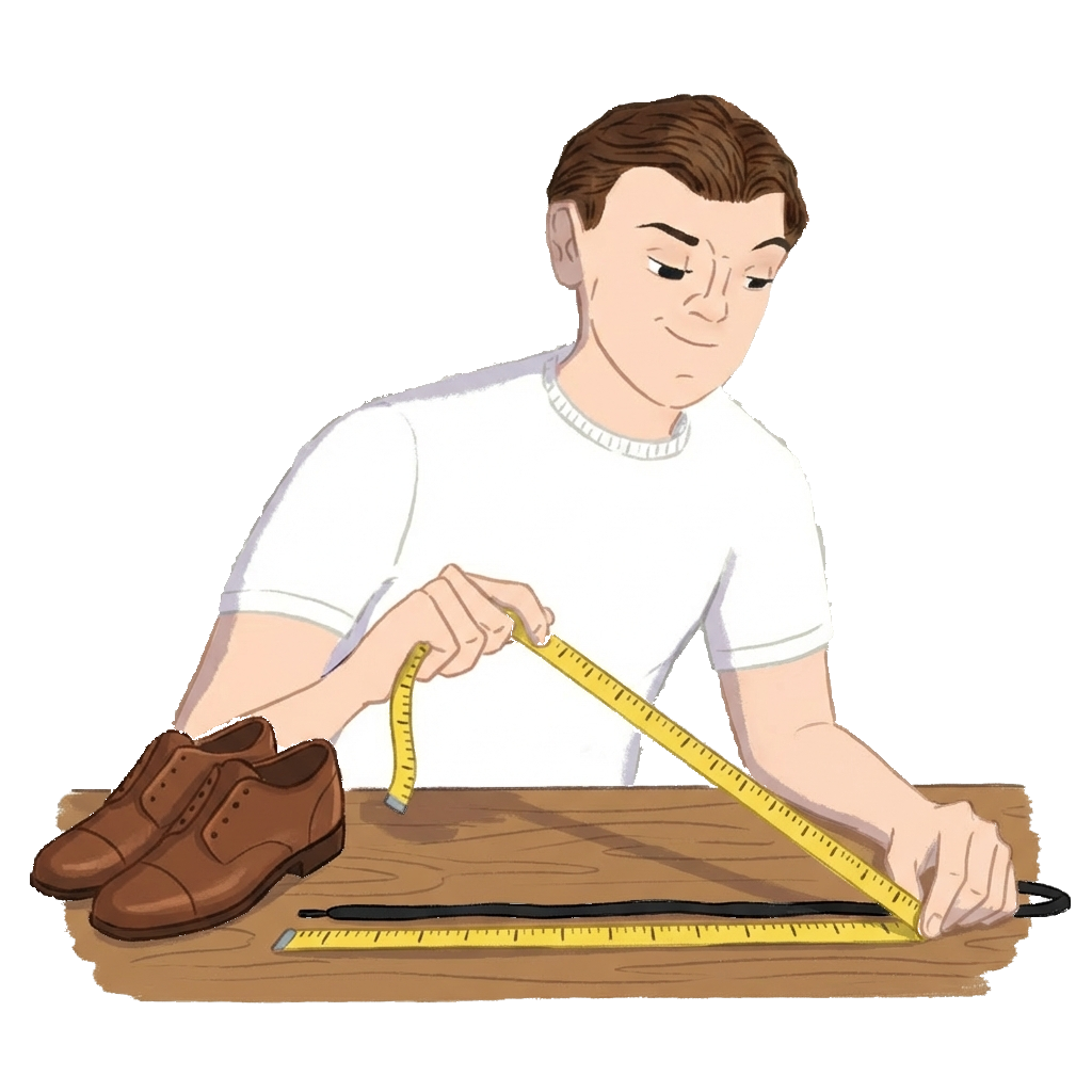 Det lyder måske for nemt, men den mest sikre måde at finde den rigtige længde til dine sko er at måle de eksisterende snørebånd, du vil udskifte/opgradere.
